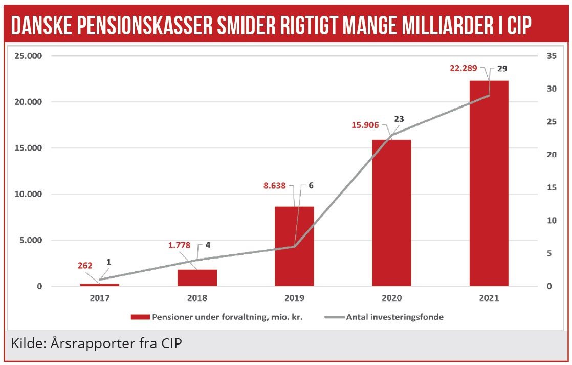 Trods tågesløret har Økonomisk Ugebrev forsøgt at stykke økonomien sammen i CIP ved at gennemgå de tyve mest centrale årsrapporter fra CIP-netværket i Danmark. Og de viser, at pengene for tiden vælter ind fra pensionskasserne.