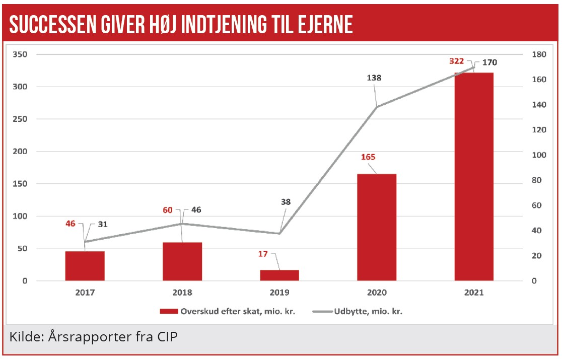 I løbet af den næste måneds tid vil de fem partnere i CIP modtage mindst 170 mio. kr. i udbytter, viser en af koncernens mest centrale årsrapporter, der i denne uge blev offentliggjort i CVR- registret.