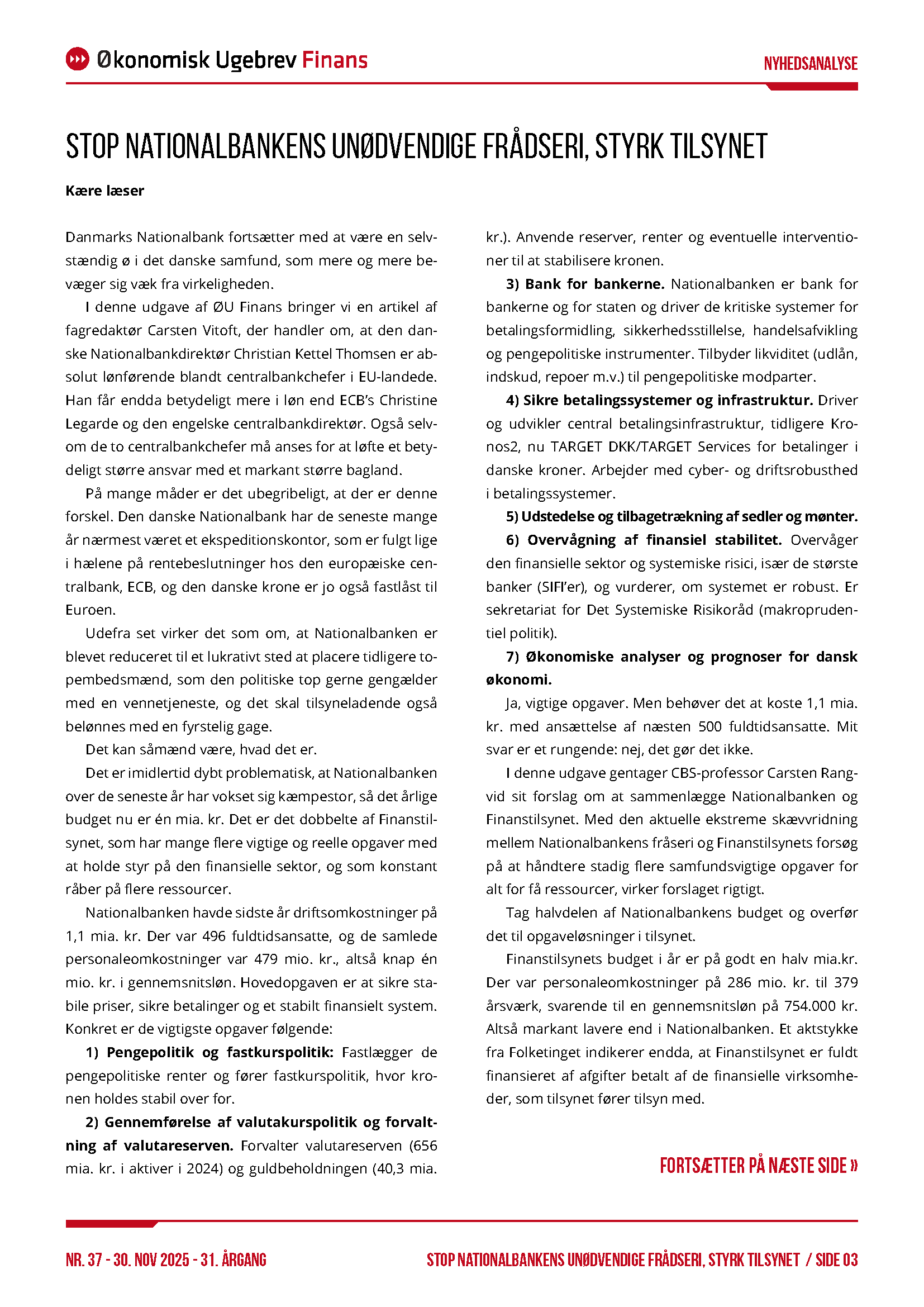 • Stop Nationalbankens unødvendige frådseri, styrk tilsynet