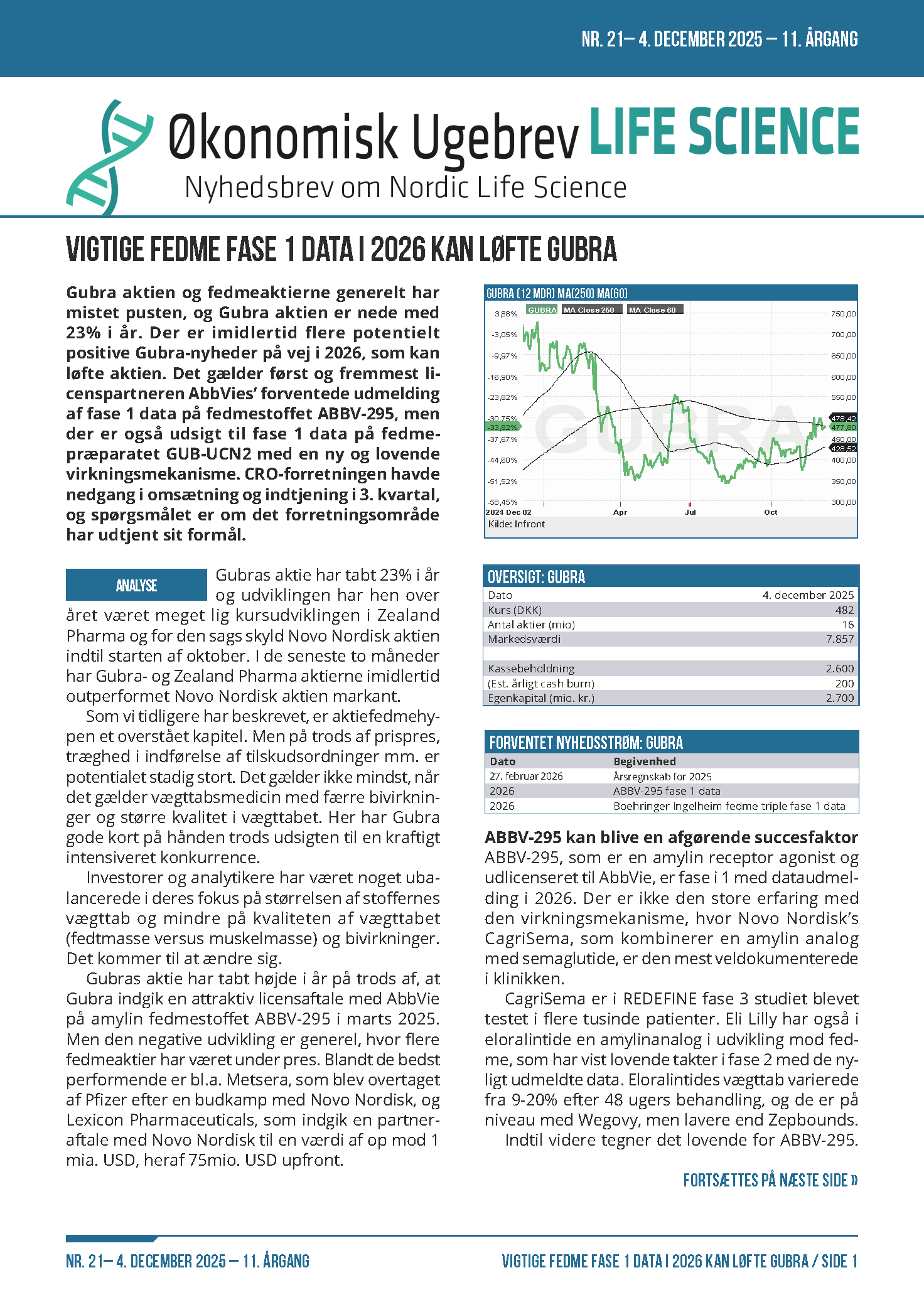 - Vigtige fedme fase 1 data i 2026 kan løfte Gubra
