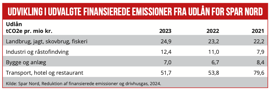 Nedenstående er udpluk fra en tabel i Spar Nords klimarapport – i den originale tabel indgår der også en rækker ikke CO2-tunge sektorkategorier som eksempelvis Information og kommunikation.