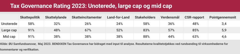 *Vi har i år strammet kravene til, hvornår virksomheder kan opnå point i målepunkt 2 vedr. aktiviteter i skattelylande. Man kan derfor ikke 1:1 sammenligne virksomheders pointscore i år i dette målepunkt med scoren i 2022.